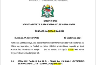 Tangazo la Ajira Mpya za Walimu 2024 MDAs & LGAs