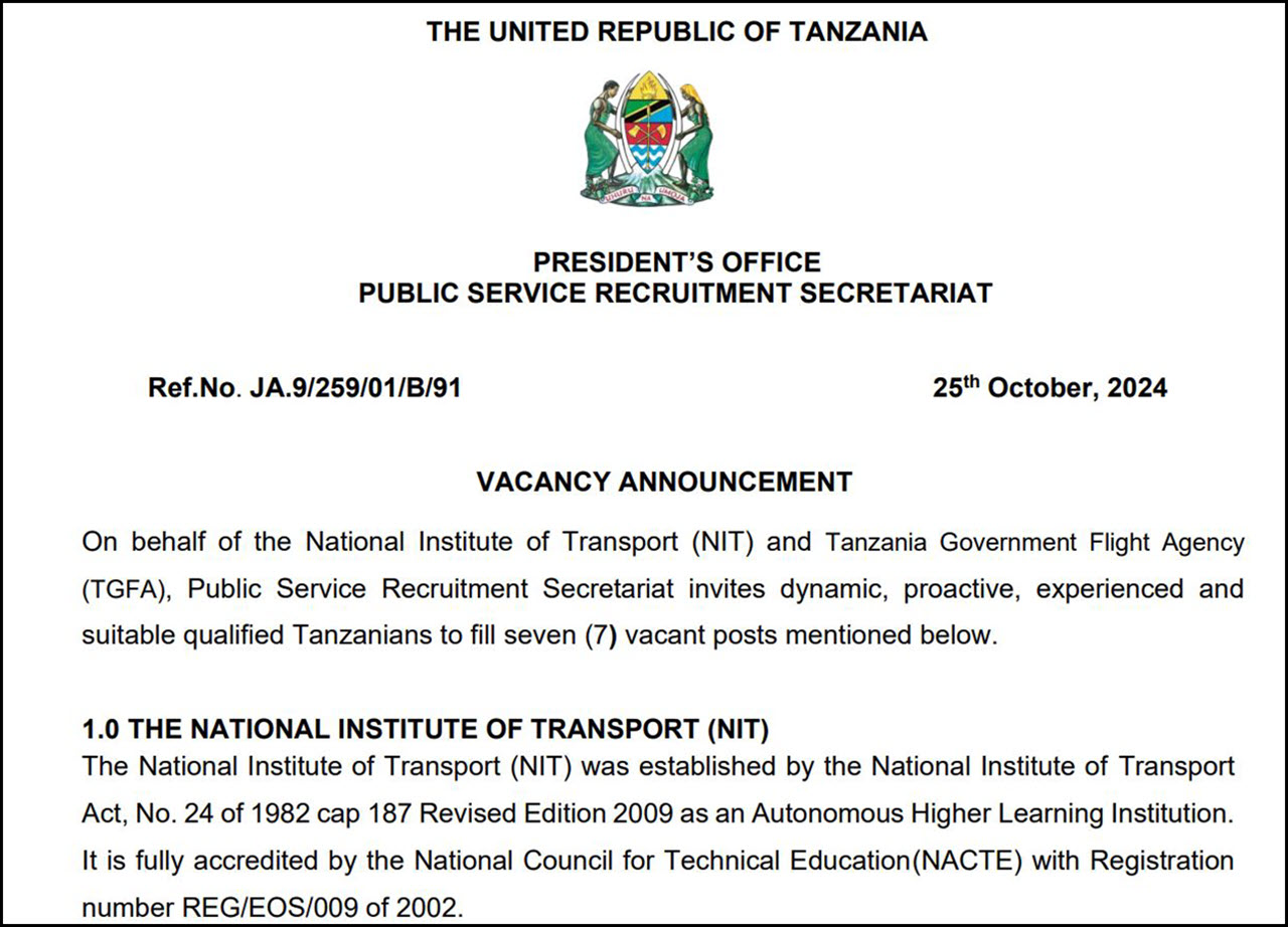 Maombi yote yanapaswa kutumwa kupitia Recruitment Portal kwa kutumia kiunganishi kilicho kwenye tovuti ya PSRS (Sekretarieti ya Ajira katika Utumishi wa Umma). Ili kuomba nafasi hizi, fuata maelekezo kwenye https://portal.ajira.go.tz/ au tembelea tovuti ya PSRS kisha bonyeza kwenye sehemu ya ‘Recruitment Portal.’ Mwisho wa kutuma maombi ni tarehe 7 Novemba, 2024.
